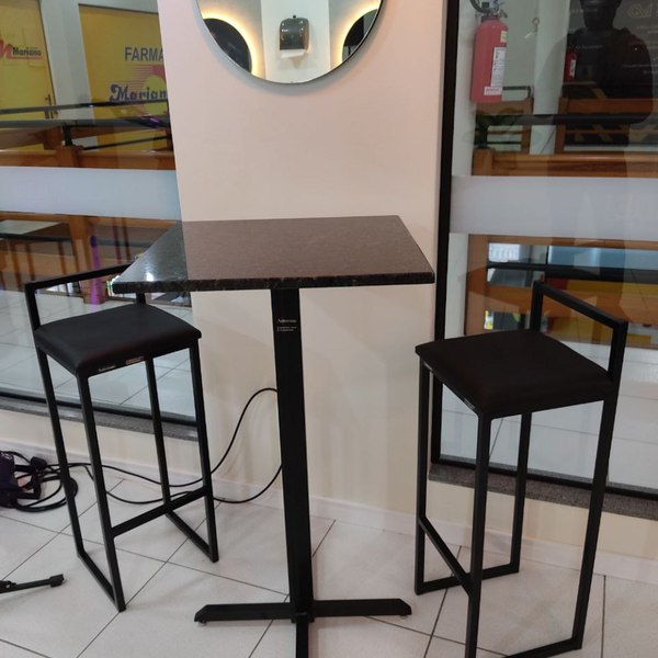 Produzida na altura ideal para balcões e mesas altas, a banqueta conta com apoio para os pés! Tudo isso para proporcionar muito conforto para você e seus convidados.